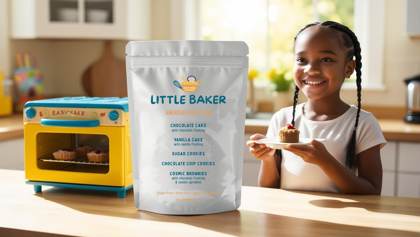 Introducing the American Collection - a nostalgic, all-star lineup of classic desserts made just for your Little Baker! This set brings all the beloved American bakery favorites into the Easy-Bake world with allergen-friendly, just-add-water mixes that taste as good as they look.